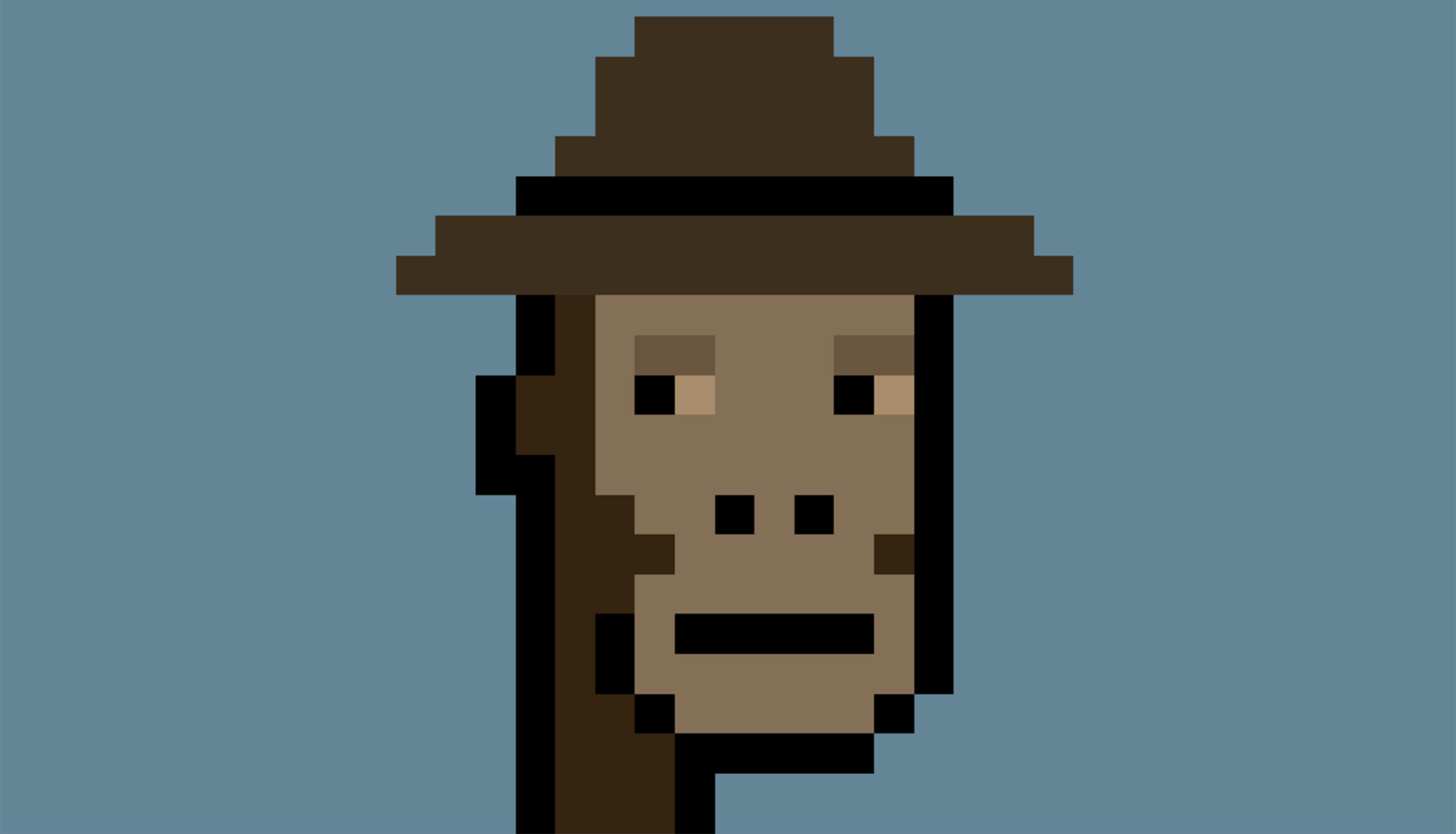 Larva Labs, CryptoPunk # 6965, acquired by Ryan Zurrer in 2025. The work is dubbed “Jungle Punk” by the collector, who uses it as his online picture profile. Courtesy of Ryan Zurrer