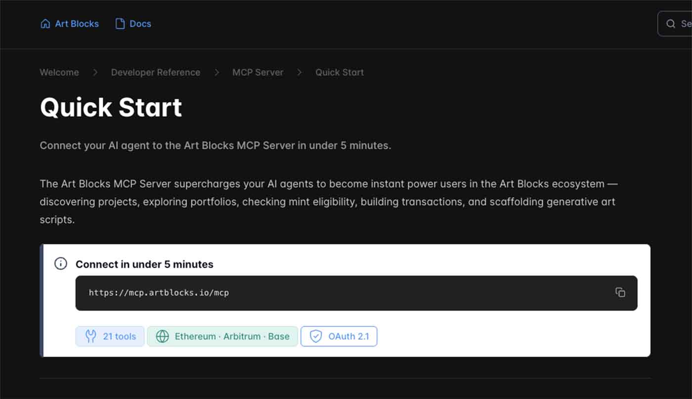 According to Lyall, it was after challenging itself to “make AI agents a first-class citizen of our website, of our data, of these collections” that Art Blocks determined that an MCP was the answer.