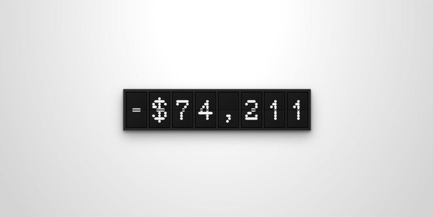 Jack Butcher invites online participants as well as fair visitors to take part in Self Checkout, a piece inviting varied contributions to the production costs of the new work: four kiosks and an on-wall counter — a live, split-flap, display, counting back from the $74,211 deficit — which online participants can watch remotely.