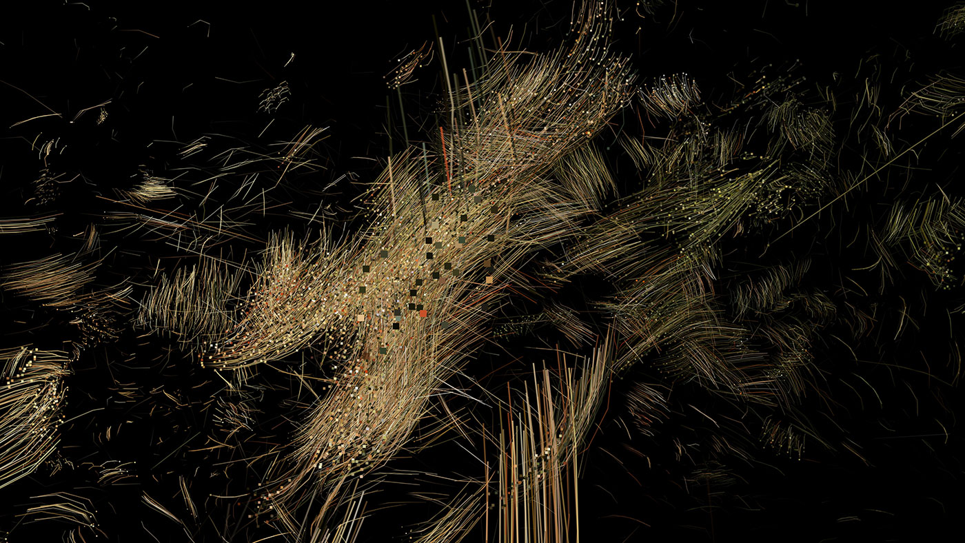 Casey Reas will be showing two sets of work. His own video-based Earthly Delights (2025), generated from scans of summer vegetation collected at Burnt Mountain in Colorado, and works made with Erika Weitz in the Technical Image series, where the two artists use the 19th-century wet plate collodion process, an early photographic technique, to fix GAN-generated botanical images.